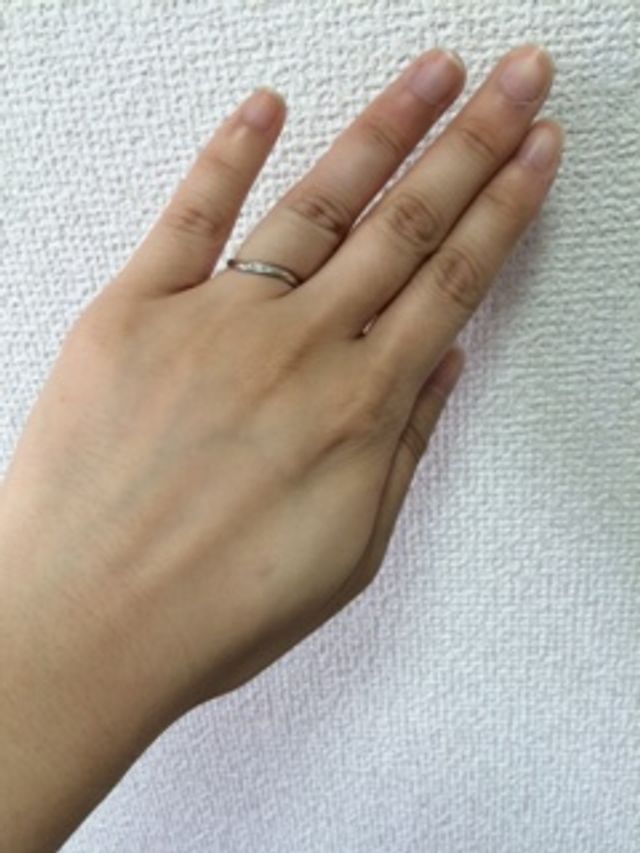 リングが斜めにカーブしており、指がとてもきれいに見えるデザインだなと思い、購入に至りました。
