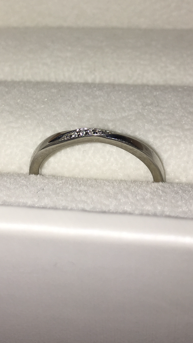 ユニークな指輪も素敵ですが、一生つけるものなので、着け心地を重視して表面が滑らかなもの、手を見た時にあまり主張しすぎないものにほうがいいと思い、最終的にこちらのデザインにしました。