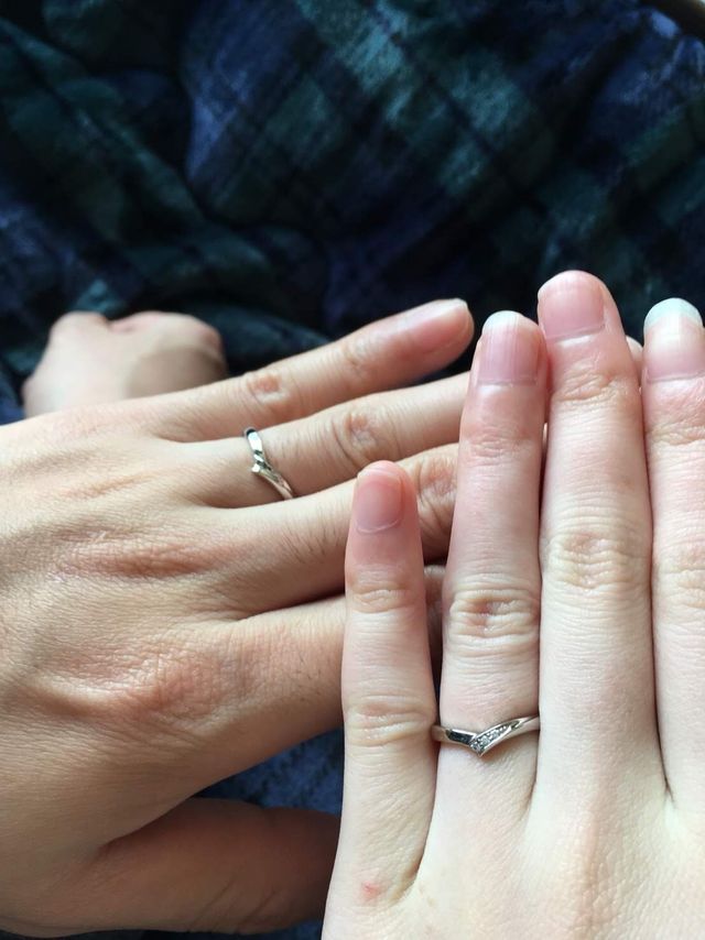 細めでしっかりしたデザインの指輪を探していました。この指輪は細すぎず、太すぎず探していたイメージのものとピッタリで価格も良心的だったので即決して購入になりました。男性の指輪もV字で指がキレイに見えるデザインになっています