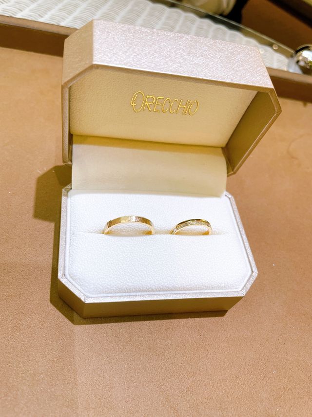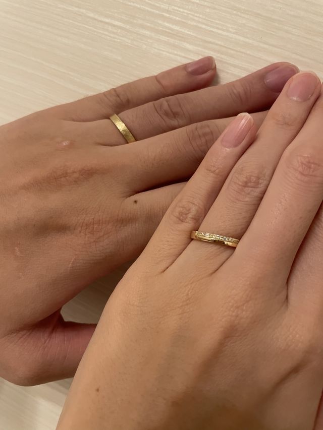 ペアリングだとどうしても男女のデザインが似ていてシンプルなものになりがちですが、こちらのペアリングのセットはセットですがデザインが異なり相手も私も気に入ったのでこちらにしました。普段使いにも出来るし本当に可愛いです!