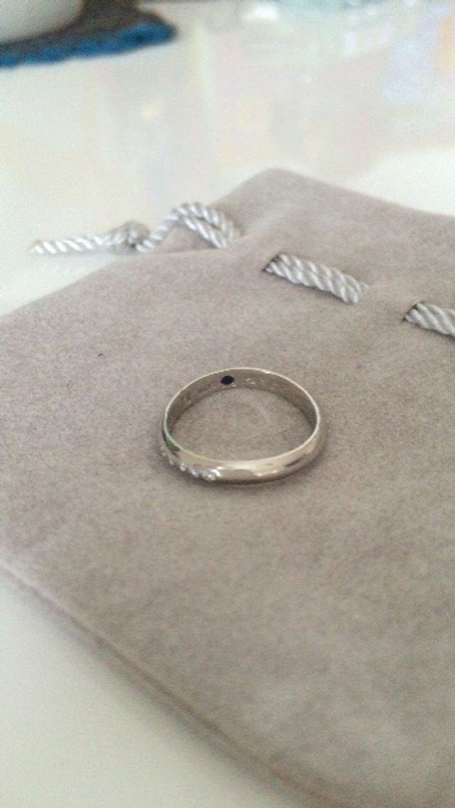 緩やかなカーブが指をキレイに見せてくれますし、シンプルだけど5つのダイアモンドが華やかな所も気に入りました。