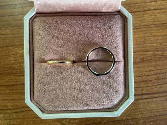 お店に行く前は別の指輪を考えていましたが、店員さんにその指輪はお客様の指には太すぎるという事でこちらにしました。中央部分にひねりがあってさりげなくおしゃれなのが気に入りました。彼女とは好みが異なりセットリングではありませんが、お互いが最も気に入った物にしました。