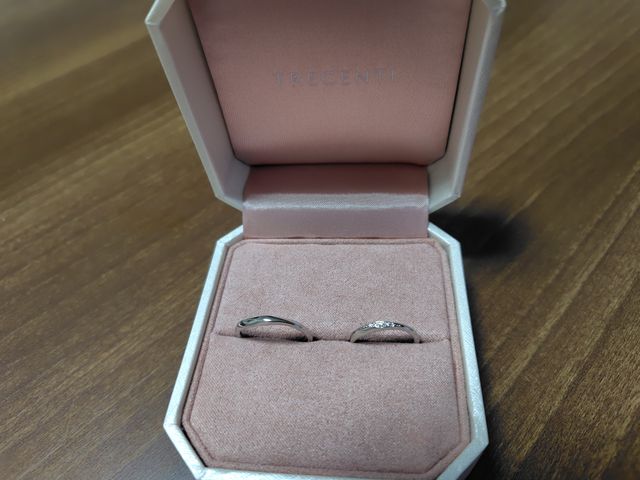 平打のリングと、トレセンテさんのリング(内甲丸)のつけ心地を比べさせて頂いたのですが、内甲丸のリングはつけているときの違和感が少なく、普段全く指輪をつけない私たちもぜひつけたいと思いました。また、1つの原石からとれた双子ダイヤモンドをリングの内側にセットするオプションがあります。内側なのもあり、ダイヤモンドが目立つわけではありませんが、リングをつけているととても幸せな気持ちになる素敵なコンセプトだと思います。