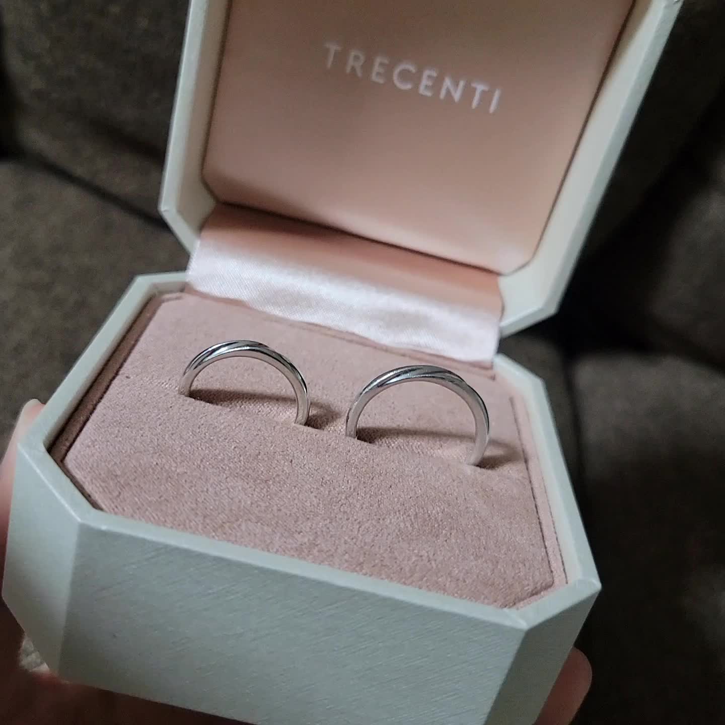 シンプルで毎日つけられる!というデザインを求めていました。本来は夫婦でカラーを分ける方が多いようですが、完全にお揃いのデザインが良かったため、シルバーに統一したものを購入しました。また、刻印と共に「双子ダイヤ」というものを埋め込んだので、特別な指輪になっています。