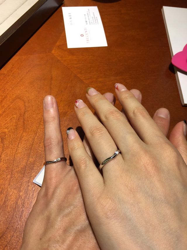双子ダイヤ、着け心地すごくよかったです。私はお揃いの指輪に憧れがあったのでそこへダイヤモンドまで2人で分けれる事に感動しました。お値段も税込金額でわかりやすく提示した金額くらいで沢山選べたのでとてもよかった。