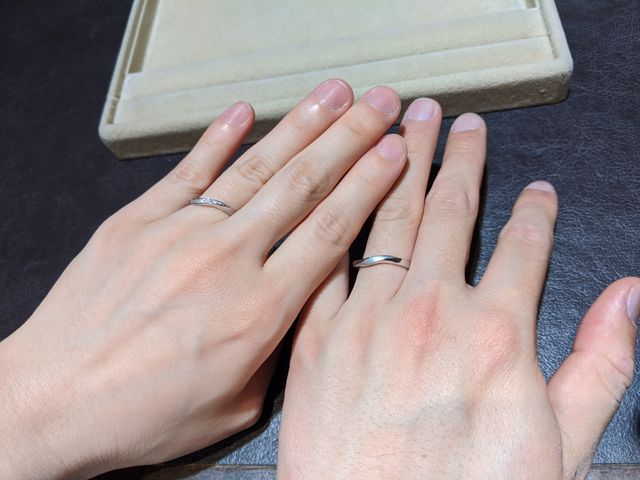 女性ものはダイヤモンドの輝きの広がりもあるので、婚約指輪にも見劣りしないので、良かった。