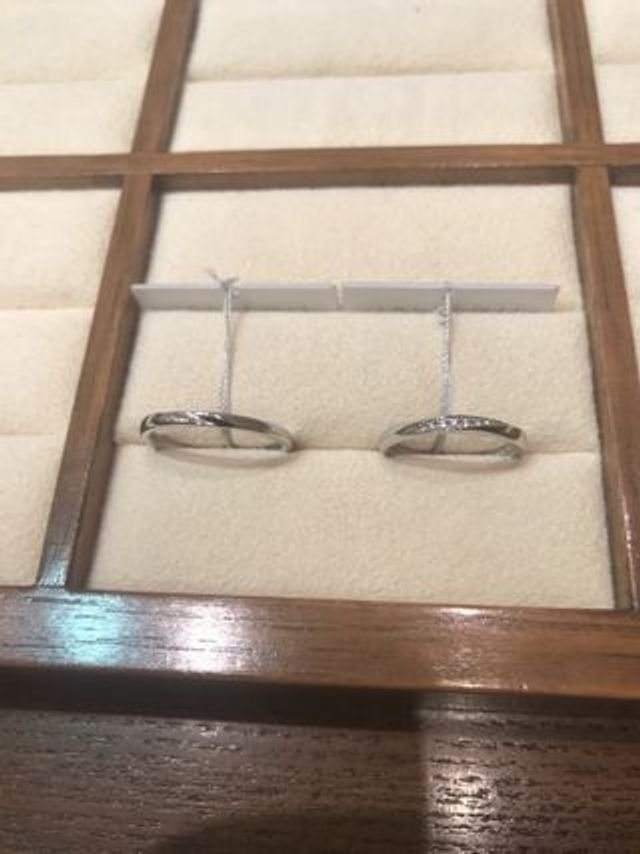 お互いに種類は違いますが内側に誕生石や双子ダイヤモンド入れる事でペアになりました。