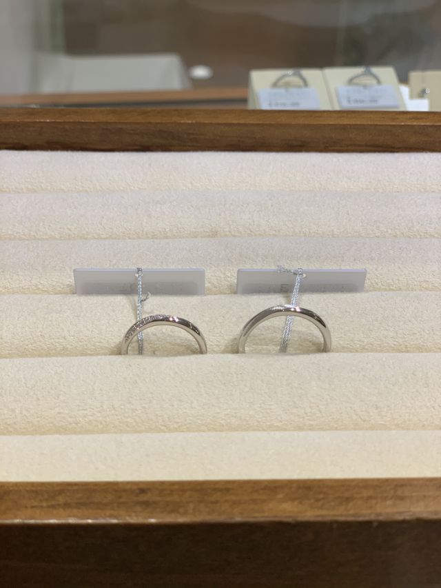 女性用は斜めから斜めに入るダイヤモンドが綺麗でした。