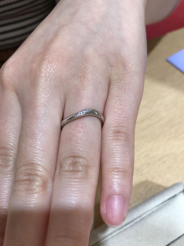 リング自体、素材にこだわってプラチナが95%と、残りはアレルギーがほとんどでないものを錬金したり、指になじみやすいカーブになっているのが魅力的でした。