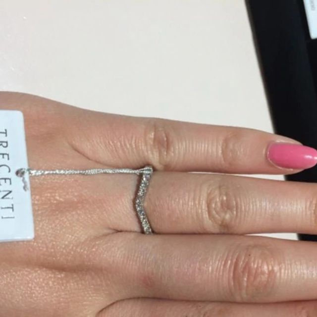 指をすっきりと長く見せてくれる効果のあるVラインのデザインが気に入りました。素材はプラチナの他にイエローゴールドなどが選べるので、肌の色合いとも合わせやすいと思います。つけ心地が非常に良く、ダイヤの輝きも綺麗ですね。