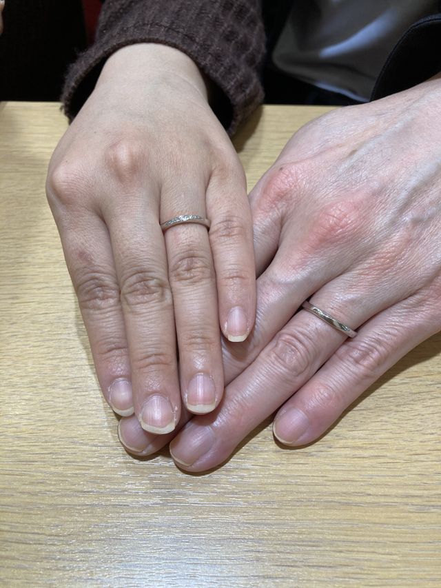 たくさんあるデザインの中から、わかりやすくスムーズにご提案いただき納得して決めることができました。普段からつけている指輪との相性やヒアリングから私の好みを早くから気づいてくださったので、最初にご提案いただいた指輪に決めました。