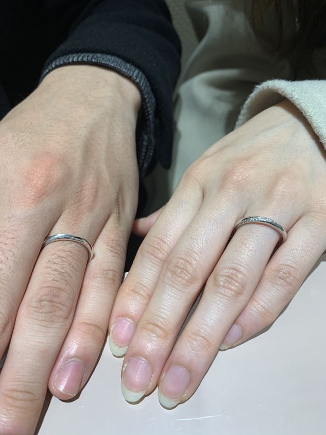 他店と比べて、デザイン・着け心地・アフターサービスが良かったのでトレセンテさんを選びました。また、ダイヤモンド・リングの品質が高いとのことで、長く使えるものがよかったので、そちらも決め手となりました。
