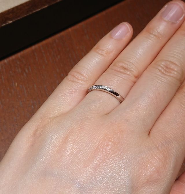 思っていた感じの指輪のデザインだったことと、つけた感じか良かったので。つけた時に指輪が軽く、付けていること忘れるような感じなのも好感触でした。ダイヤも