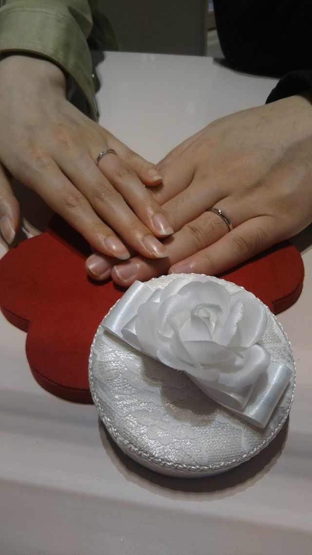 2人とも普段指輪を着用する習慣がないので、つけ心地がよいものをと思い、検討をしていましたがこちらは違和感がなく着けられました。またデザイン性もあり、石が取れにくいなどしっかりした作りであることも決め手でした。