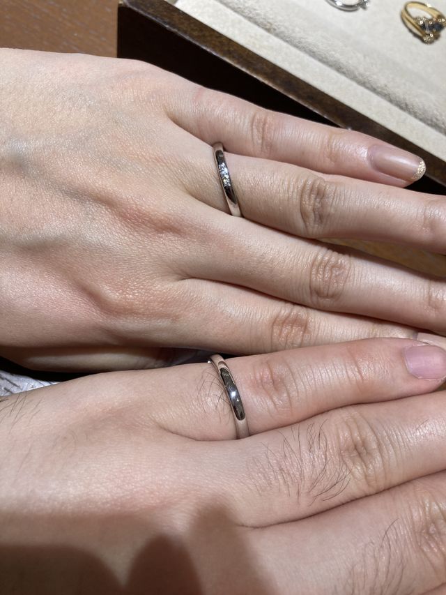 一般的な指輪の形より、つけ心地が良い。種類も豊富なのでたくさんの中から選ぶことができた。指輪の材料のうち、プラチナ以外の部分には、一般的に使われている素材よりもアレルギーになりにくいものを選んでいるらしいので安心できる。