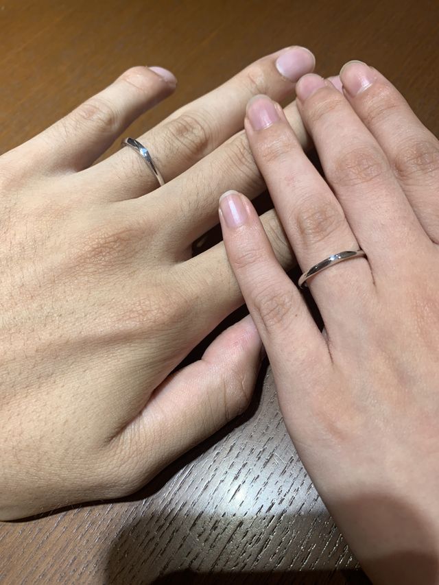 指輪のデザインがシンプルな物を探していましたが、今回シンプルでかつ少しだけデザインが入って2人とも気に入った指輪がありましたので、決めました。また、素材として、パラジウムが使われておらず、アレルギー対応も良いなと思いました。