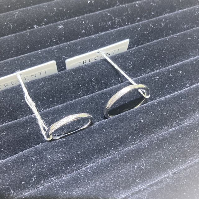 ストレートなデザインですが、指に沿うような石のデザインで指が綺麗に見えました!指が綺麗に見えることを重要視していたので大変気に入りました。男性もマット加工されているので、光すぎず普段使いもしやすいと思います。