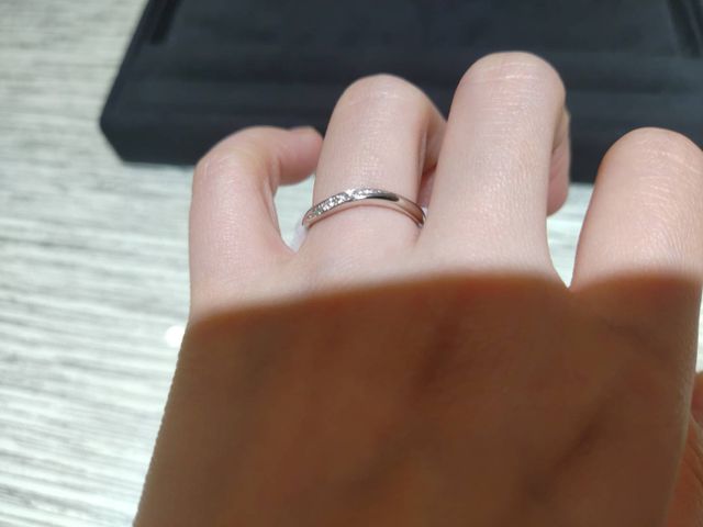 ウェーブタイプの指輪です。指が短くても綺麗に見えるデザインでした。つけ心地もとてもよかったです。ダイヤモンドはすべてハートアンドキューピッドが使われているらしく、とても輝いていました。ずっと使い続けていきたい指輪だなと思いました。