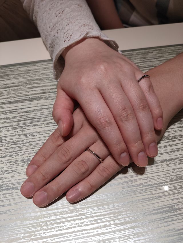 着け心地がとてもよく、デザインも含めビビッときて「これだ」と決めました(*´∀`)このデザインはここだけだそうで一店舗目だったんですが、決めちゃいました。この指輪に出会えて嬉しかったです(*´ω`*)