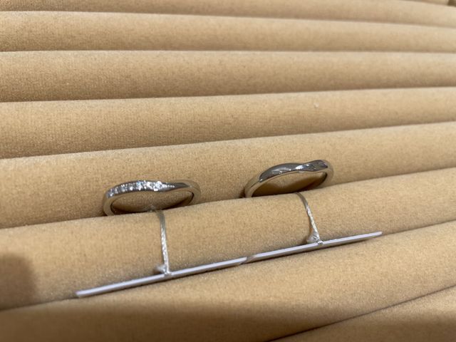 リングの内側が手作業でひとつひとつ丸く削られていて、着け心地がものすごく良かったです。また、男性用もボリューム感のある好みのデザインでとても気に入りました。ダイヤモンドのデザインも好みのものでとても気に入りました。