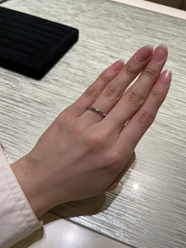 デザインの種類も豊富で、自分が気に入ったものが見つかりやすいです!素材はpt950のハードプラチナ。割り金もアレルギーが出にくいものを使っているとのことでした。