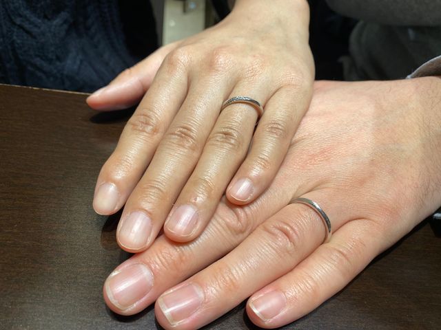 シンプルなデザインで着け心地も良かったです。また、ダイヤが埋め込みタイプで普段使いもできるところも良いなあと思いました。男性用はマット加工もいれることができ、キラキラすぎず男性でもつけやすいデザインですごく良いなと思いました。