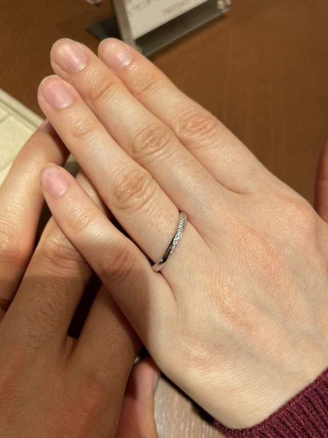 ダイヤモンドがキラキラ輝いて、とても綺麗でした。シンプルなデザインなので、普段使いのできる指輪だと思いました。また、着け心地がとても良かったので、負担感や圧迫感を感じることなく、ずっと着けていられそうだと感じました。