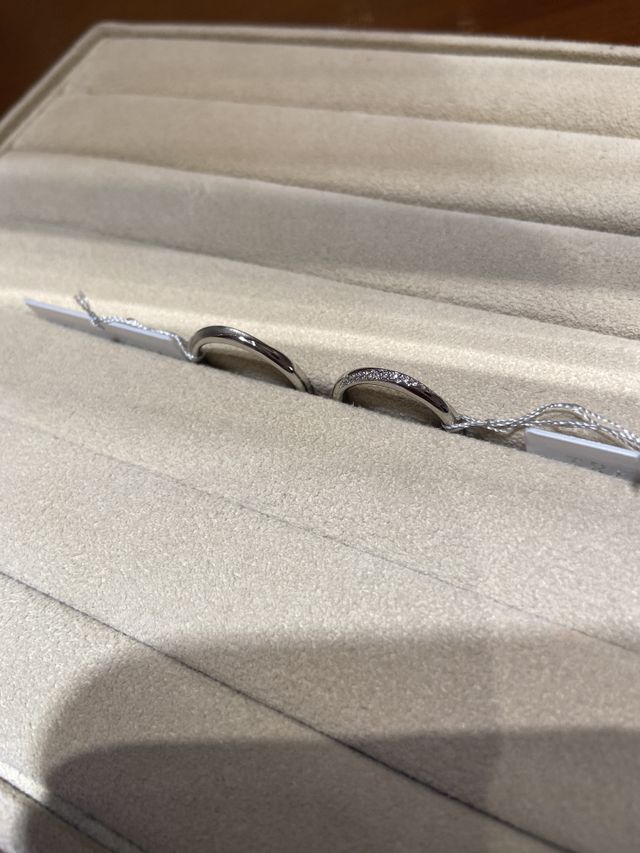 女性の方はキラキラ過ぎずに程よい感じで可愛く、男性の方はマット加工でシックな大人な感じに惹かれました。