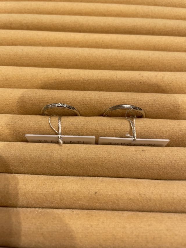 デザインはシンプルなものが良く、ストレートタイプの指輪を選びました。ダイヤの輝きがどこからでも見えるよう斜めに入っているデザインが気に入りました。