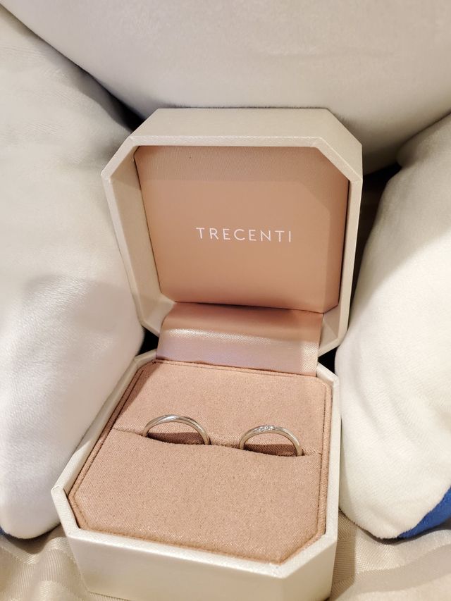 婚約指輪と重ね付けできるのも決め手になりました。