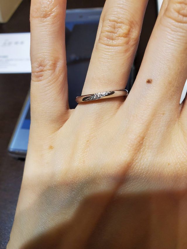 プラチナやダイヤの質がとても良く、他店のものと比較し1番手が綺麗に見えました。また、肌が弱い為、アレルギーを起こしにくい金属を使われている所も安心に繋がりました。入籍日が確定していなかった事もあり、刻印を後日お願い出来るところも助かりました。