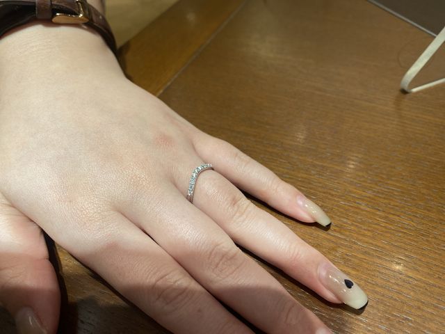 ダイヤの数が多くキラキラでかわいい。素材やデザインの細かいところまでしっかり要望を聞いてくれるので、お気に入りの指輪を見つけることができた。号数も0.5刻みであるので、指にピッタリ合うようなサイズで試すことができた。