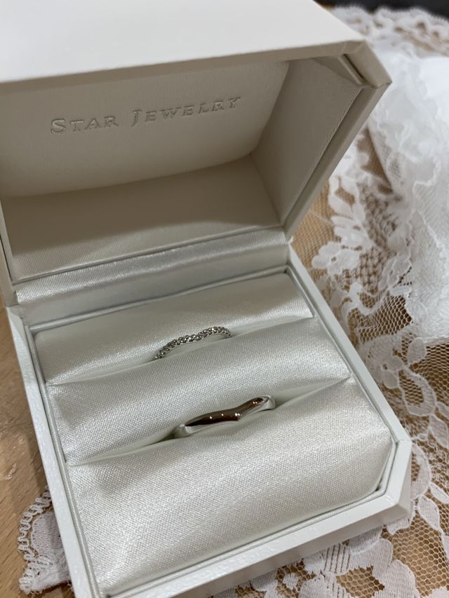婚約指輪にマッチするものが欲しくて、探しました。同じブランドのものもあったのですが、思っていたのより少し太くて、婚約指輪が目立たなくなってしまうのが気になっていました。こちらのは、上品な細さで婚約指輪との相性も良かったので決めました!