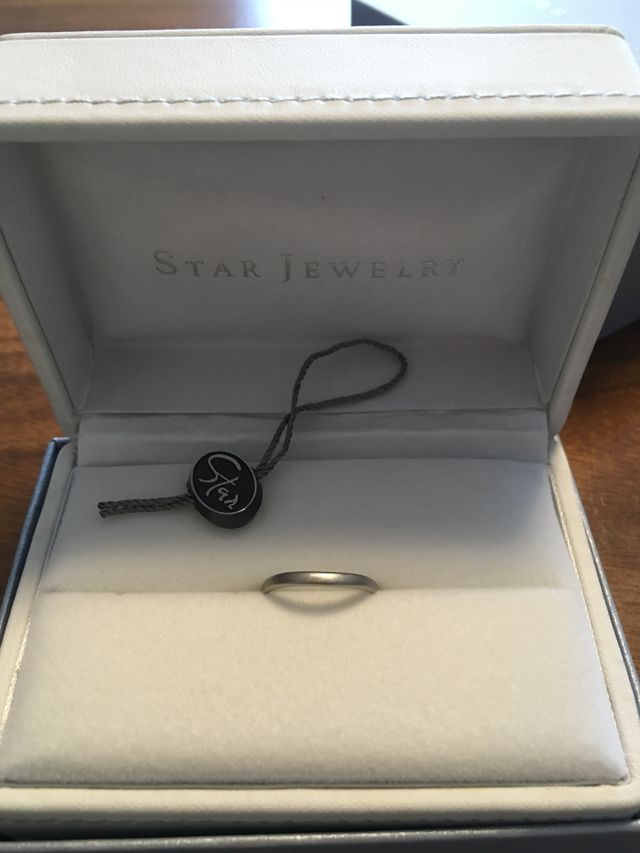 こちらの指輪はカスタム可能で、プラチナにマット加工がしてあります。加工は無料でした。たくさんのブランドを周り探しましたが、希望の指輪に出会えてよかったです。