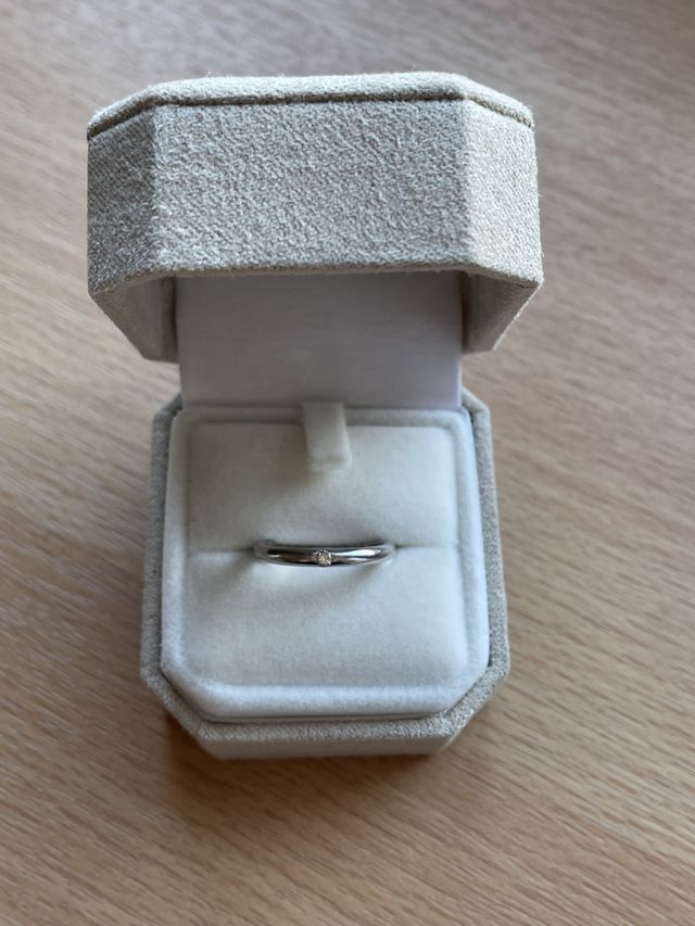 素材はプラチナで、ダイヤ一粒タイプのシンプルデザインを探していました。許容価格内で何店舗か周り比較検討していたところ、スタージュエリーのものが一番ダイヤの輝きがあり、リング部分のデザインが気に入ったため購入しました。