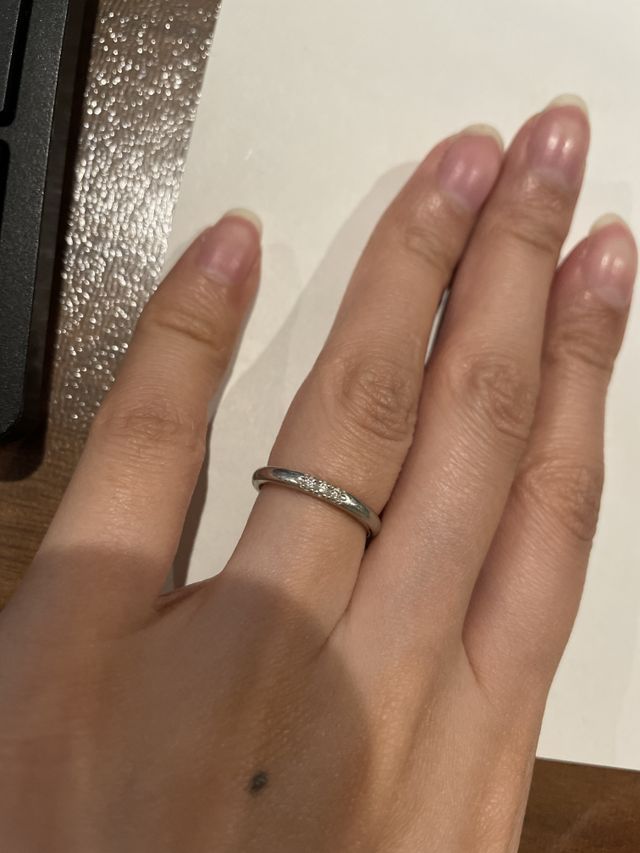 お店は明るく清潔感があり、接客はとても丁寧です。迷ってた私の意見を尊重してくださり、うれしかったです。わたしはまるいデザインがよく、主人はカクカクのデザインがよかったのですが、どちらかが譲っておそろいでも素敵だし、おそろいでなくても素敵ですよと否定することなく一緒に悩んでくださりしました。