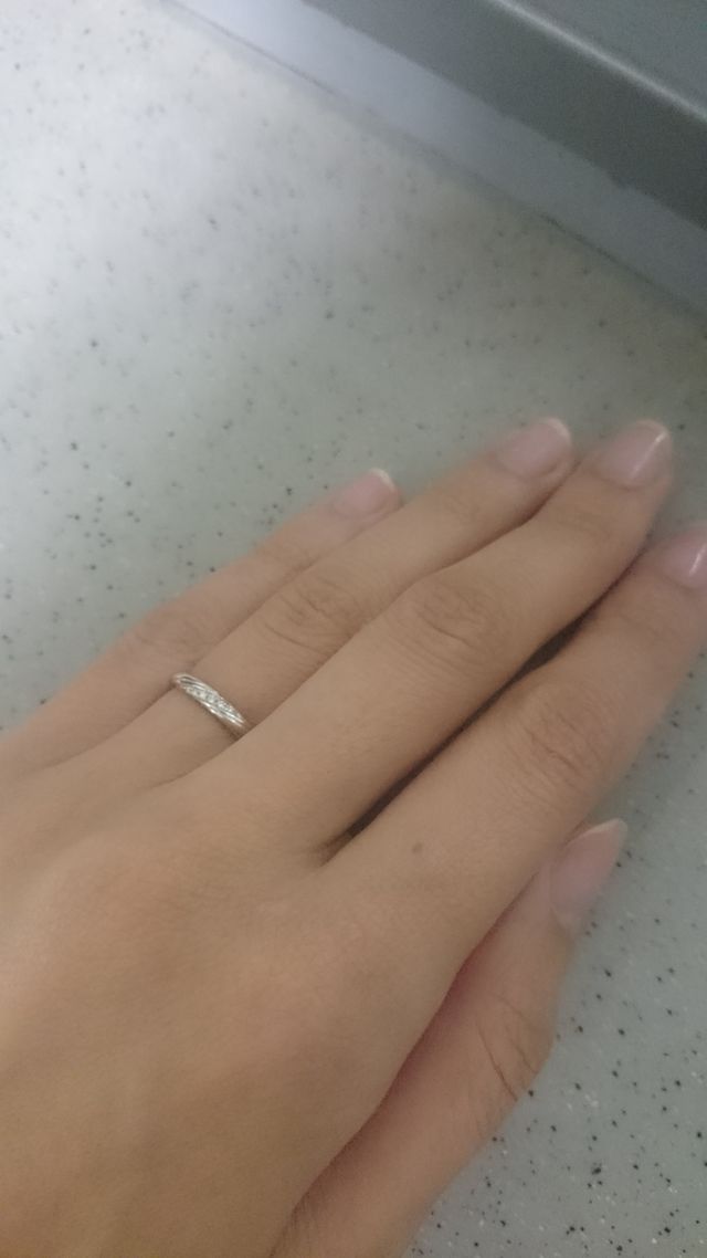 お店に行く前はHPをみて、4℃お得意の指にそって流れるようなデザインがいいね、と言っていたのですがつけてみると逆に私には合わないような感じ。