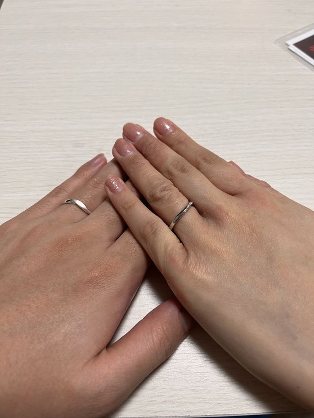 シンプルで良い。ウェーブが入っていて女性は指が細く、綺麗に見えるらしい…男目線ではさほど分からん。他の有名ブランドには劣るかもだが、価格抑えたい人はいいかも(どこのブランドでもプラチナや金を買うとなると結局それ相応の値段はかかってくる)