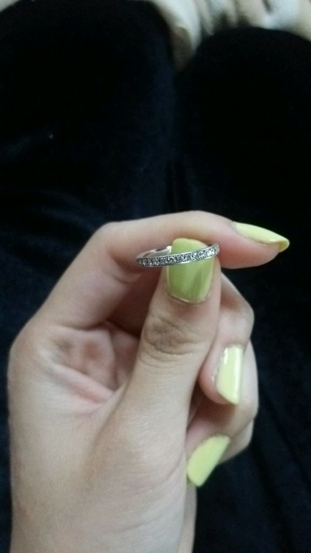 まわりにダイヤがついていてとても綺麗ですし、夫も似合ってると言ってくれたこの指輪にしてとてもよかったと思います。
