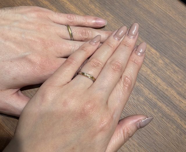 指輪の受け取りまですごく楽しみで過ごしており、新郎も毎日肌身離さずつけると喜んでおりました。