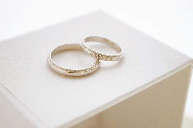 ミル打ちがとても綺麗で気に入りました。また、中央に5つのダイヤの石が入っているのにも関わらずシンプルな所も気に入りました。