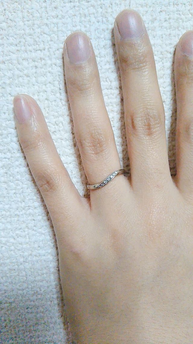 ストレートタイプや、1周全てキラキラしてるタイプなどと迷いましたが、決め手は「派手すぎず、シンプルすぎず」でした!指をキレイに見せてくれるウェーブラインに適度なキラキラ感で、大満足です!また私の友人ではストレートタイプが多く、人と違ったものを付けたいと思ったのも決め手の1つです!