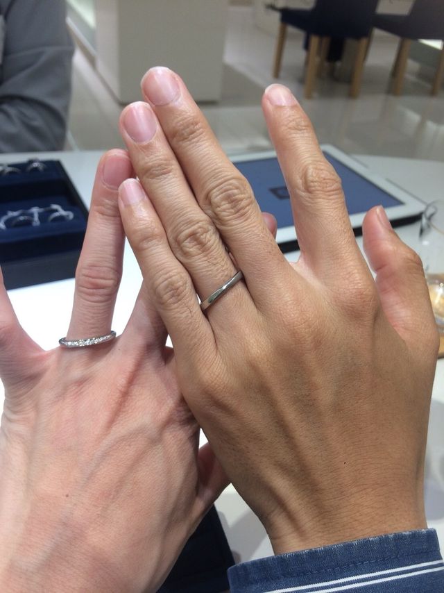 男性の指輪は、シンプルだけどおしゃれな感じで、彼もとても気に入っていました。