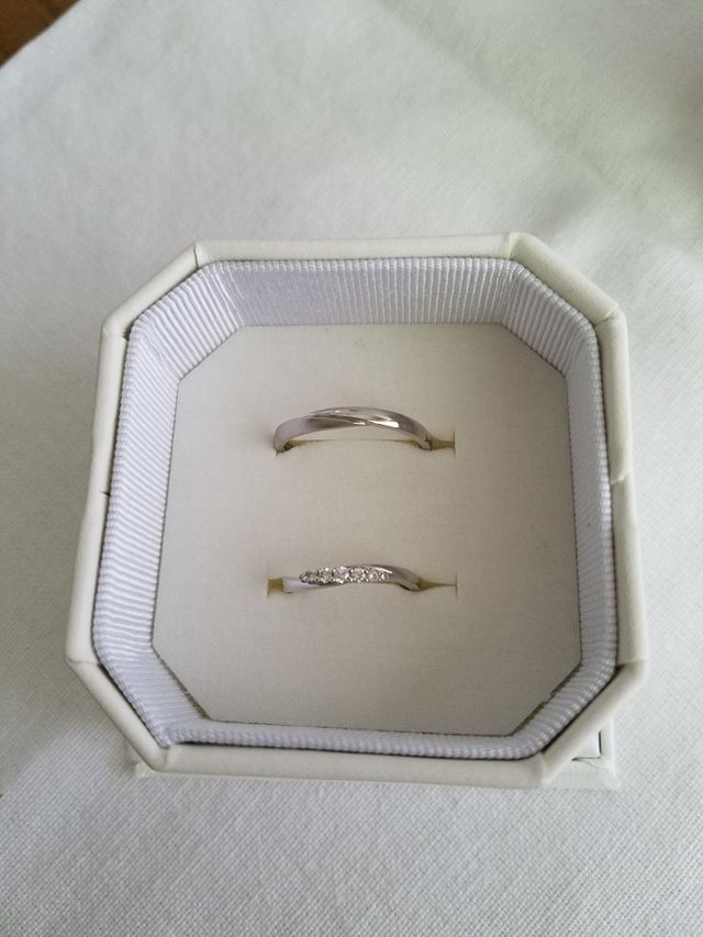 旦那さんの手が太いので、それに似合うものをと思って探して、最初に検討していたものを実際見るとシンプルすぎたので、何個か見せて頂いた後に、旦那さんの方が気に入ったようで、これに決めました。