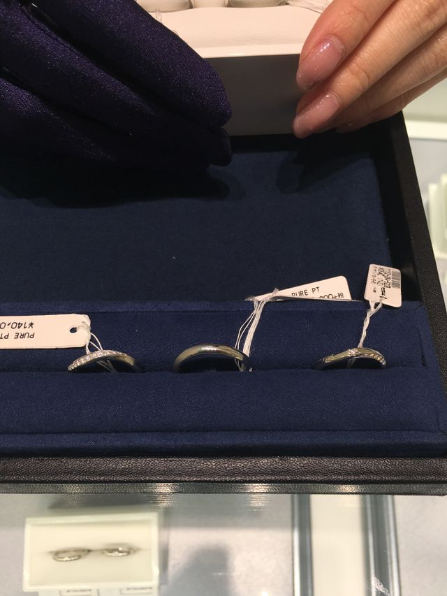 他に回ったお店だとプラチナ純度95パーセント以上、という材質の指輪が多かったのですが、ここではプラチナ純度99パーセント以上の指輪が置いてありました。