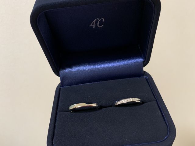 指輪のデザインにこだわりはなかったのですが、たくさん試着した結果シンプルなこちらが気に入りました。