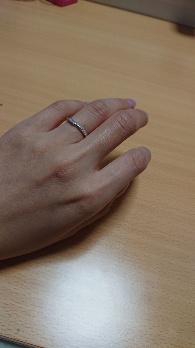 はめたとき、違和感なく手に馴染み、着けてるのを忘れてしまうくらいです!(笑)派手めなのを選んだにも関わらず、思ったより安くかったです。普段のアフターケア等も全国の店舗でしていただけるとの事でしたので、転勤族にとって嬉しいです。