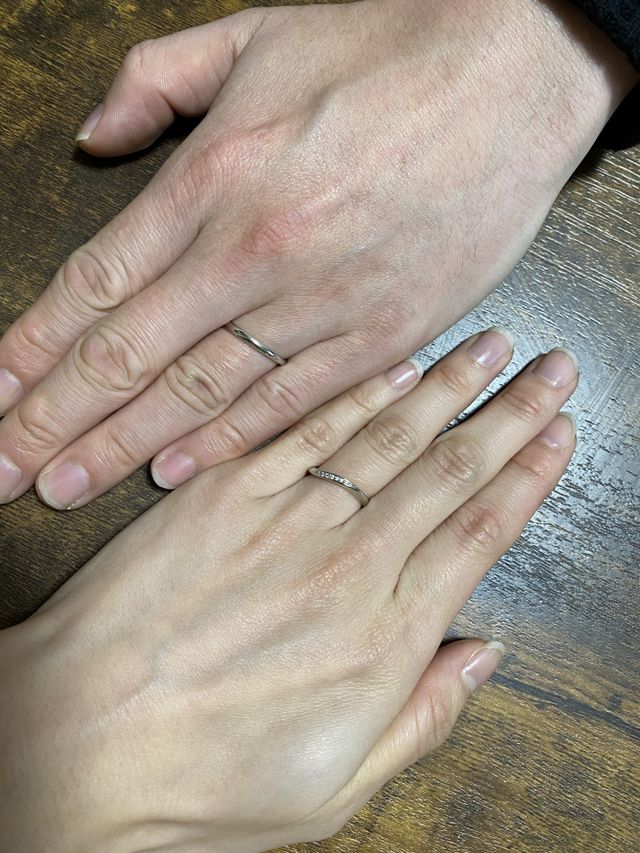 シンプルでウェーブのデザインを探していた所、着け心地の良さと、予算内であった事が大きな決め手になりました。細身で7石のダイヤがついているのですが、指を長く見せてくれるし、宝石の輝きも私には程良くてとても気に入りました。