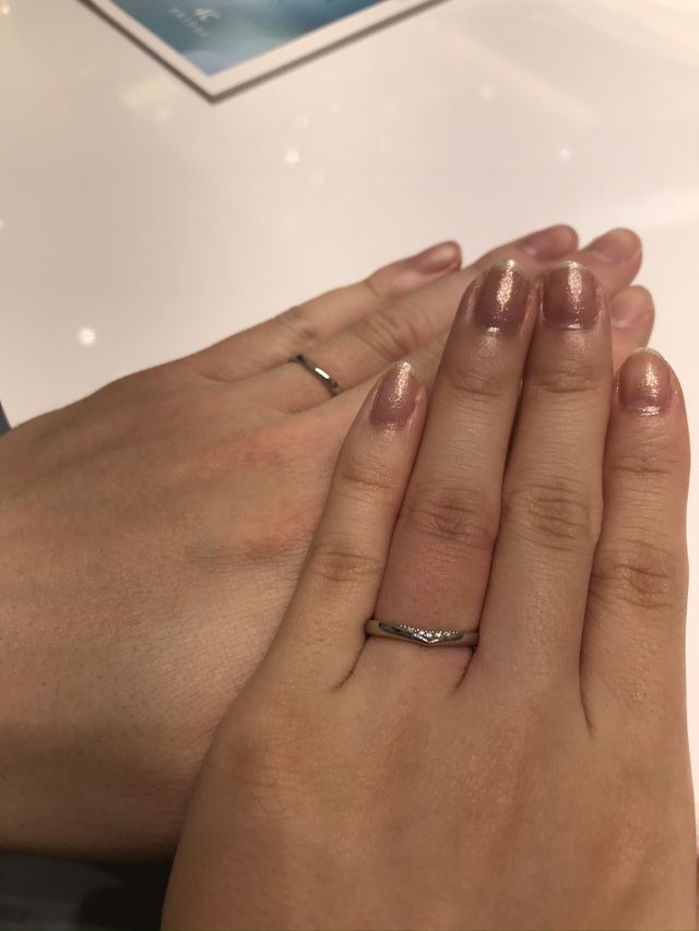 いくつか見た中で、このV字ライン&左右対象デザインが1番自分の好みに合っていました。さりげない大きさのダイヤが日常的にも使いやすく、服を邪魔しないデザインだと思います。素材がピュアプラチナなので、長期的な着用にも安心できました。