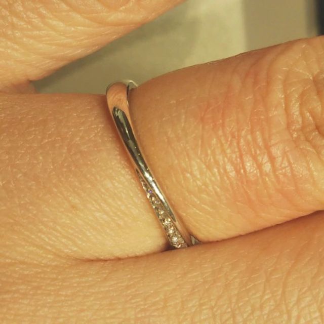 ウェーブの形が独特で面白いと思います。着ける角度や見る角度によって表情が変わるのが良いですし、ダイヤがそれほど目立たない位置にあるので、仕事用で毎日着ける人などに向いていると感じました。滑らかな質感で指に馴染んだのが決め手になりましたね。